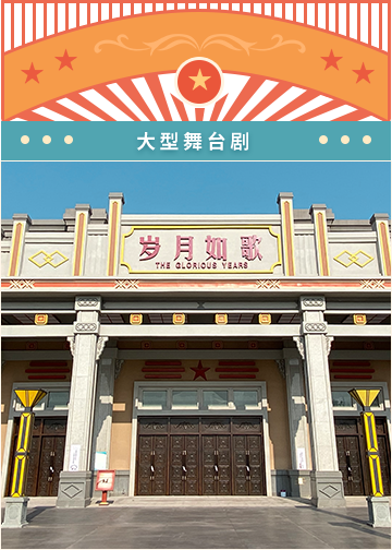 “每个年代,都有属于每个年代的歌声。”大型舞台剧《岁月如歌》选取了近70年漫漫岁月中独具年代特色、伴随一代人成长的《小路》、《歌唱祖国》、《学习雷锋》、《在希望的田野上》等脍炙人口的歌曲,通过多个大型舞台之间的转换,带领游客穿越时空,重温这段激情澎湃的光辉岁月。